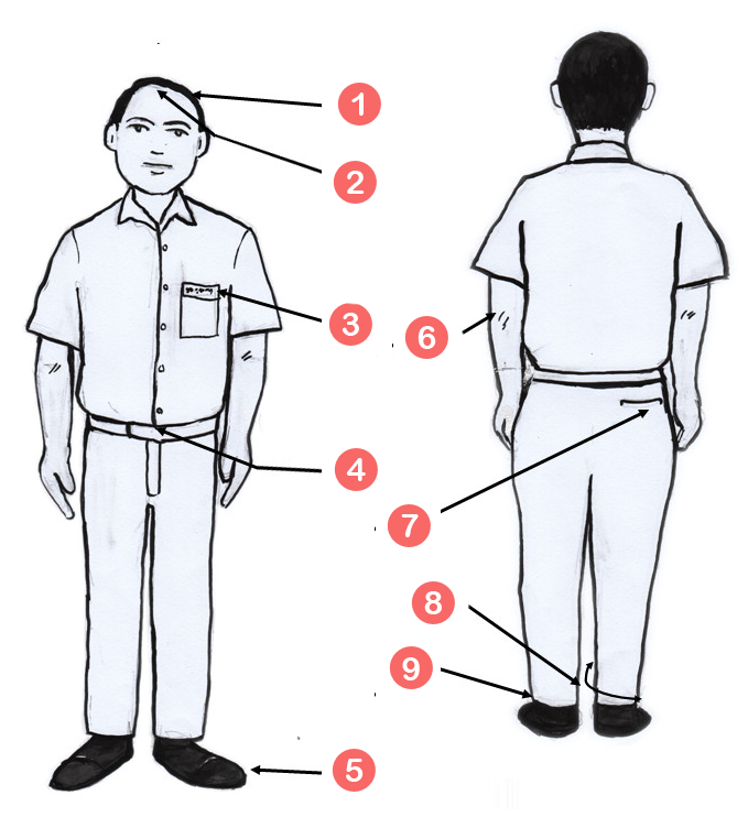 - பள்ளி லோகோ பாக்கெட்டின் வலது விளிம்பில் தைக்கப்பட வேண்டும்.